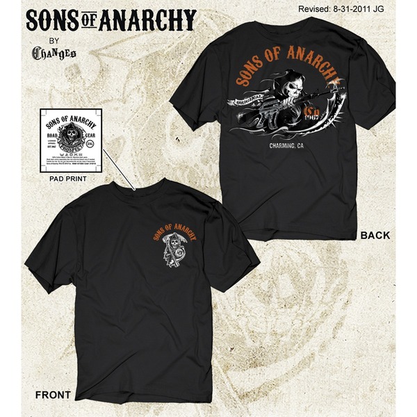 We carry the largest "in-store" inventory of Sons of Anarchy merchandise of any retailer in Atlantic Canada with a large selection of the "Girls" SOA designs. The girls SOA designs are "junior" or "petite" sizes. Check out your favourites under the "Licensed" button on the menu at the top of the page.